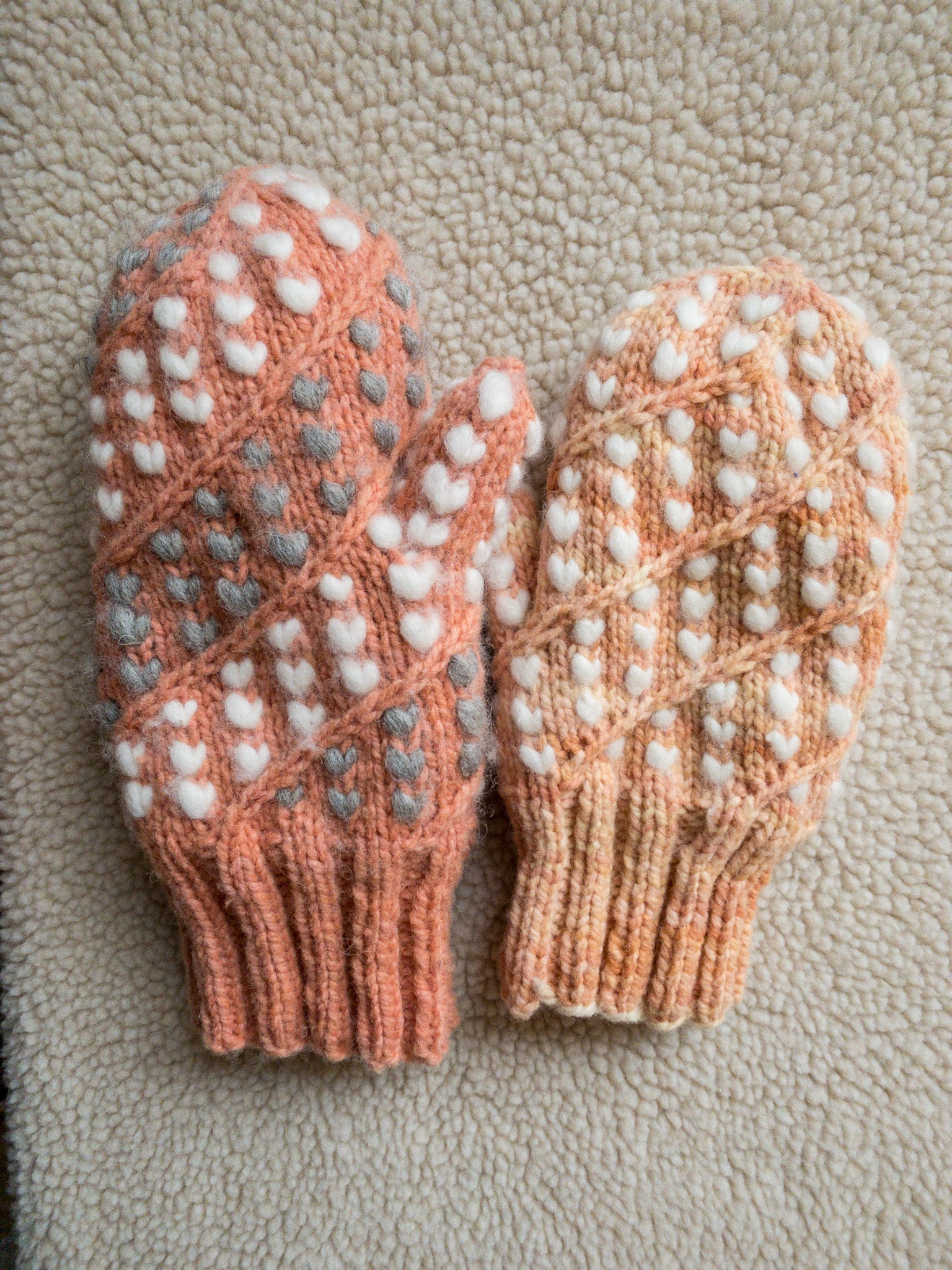 From Nancy about the pattern: "A literal twist on traditional thrummed mittens, this pattern will guide you through knitting a ladies’ size medium with suggestions for altering the size to customize to your needs. The pattern is written for knitters using dpns but anyone preferring magic loop or other circular methods should have no problem adapting it to their preference."