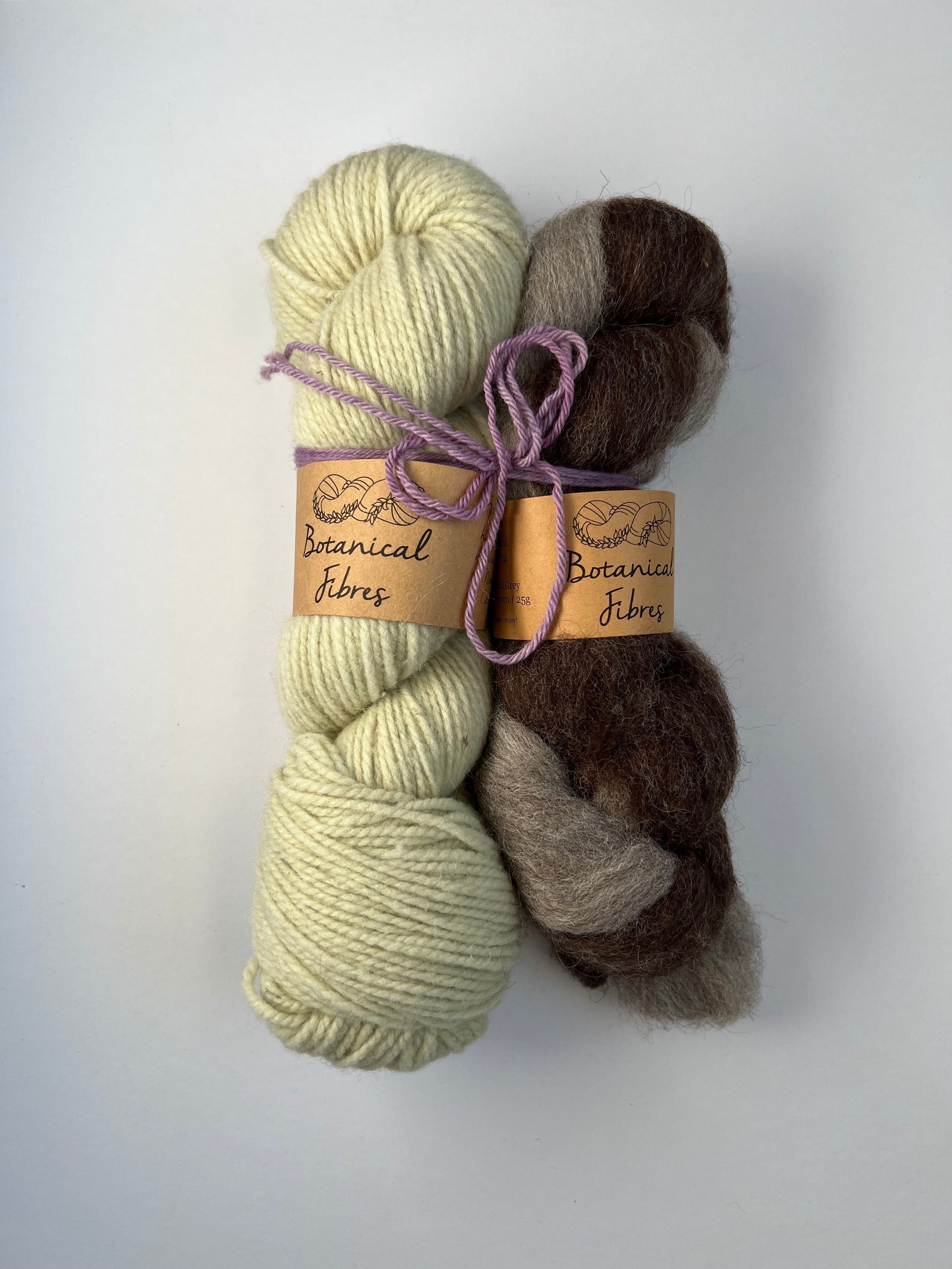 -50g undyed roving in either one colour or two contrasting colours.